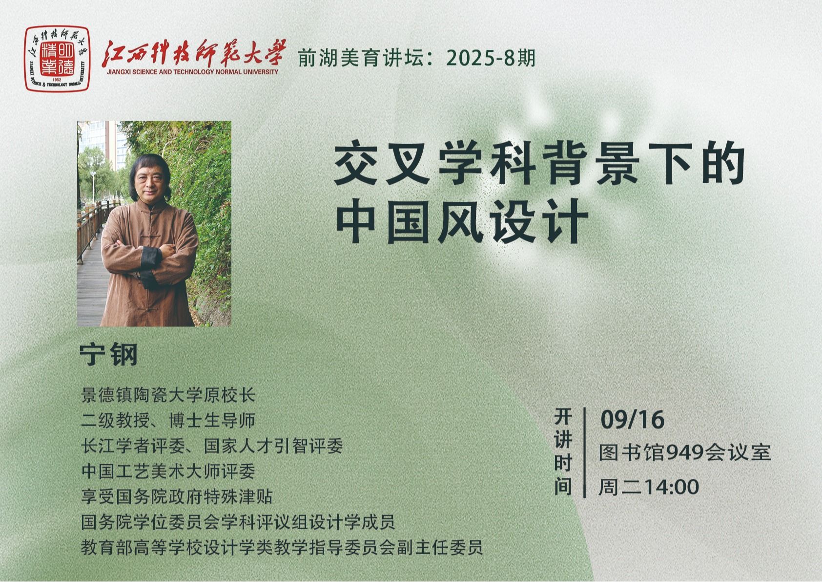 【前湖美育讲坛】 讲座预告 | 宁钢:交叉学科背景下的中国风设计