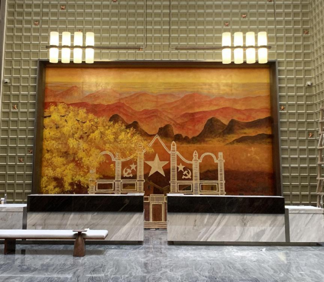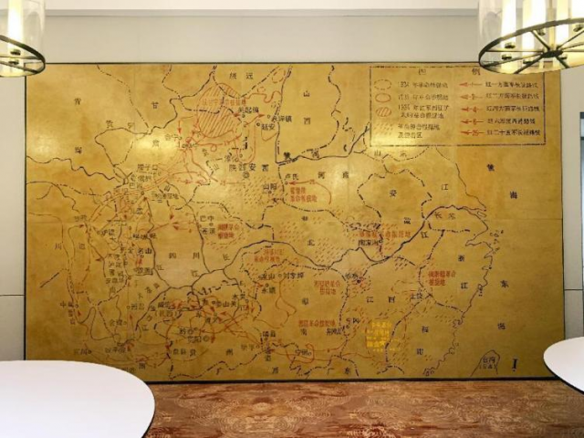 五幅漆壁画——《瑞金革命遗址》《菩萨蛮大柏地》《长征路线图》《红井》《红色故都标志》——以独特的漆艺语言描绘了中国革命历史的壮丽篇章,为瑞金这一革命圣地注入了新的文化活力。
