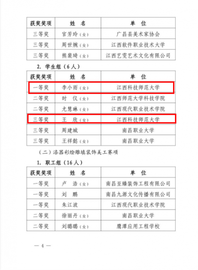 近日,由共青团江西省委举办的2024年江西省“振兴杯”青年职业技能竞赛落下帷幕。大赛涵盖职工组、学生组两个组别,设置漆器镶嵌装饰美工、漆器彩绘雕填装饰美工两个赛项。