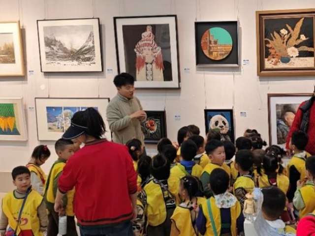 展览现场,百余件江西女性艺术家作品以中国画、油画、漆画、陶瓷等多元形式呈现。为拉近幼儿与艺术的距离,WilliamHill威廉希尔与幼儿园教师提前精心策划,确定了讲解范围、内容及互动环节,并特别安排了参展作者教师及在校学生为孩子们进行导览。
