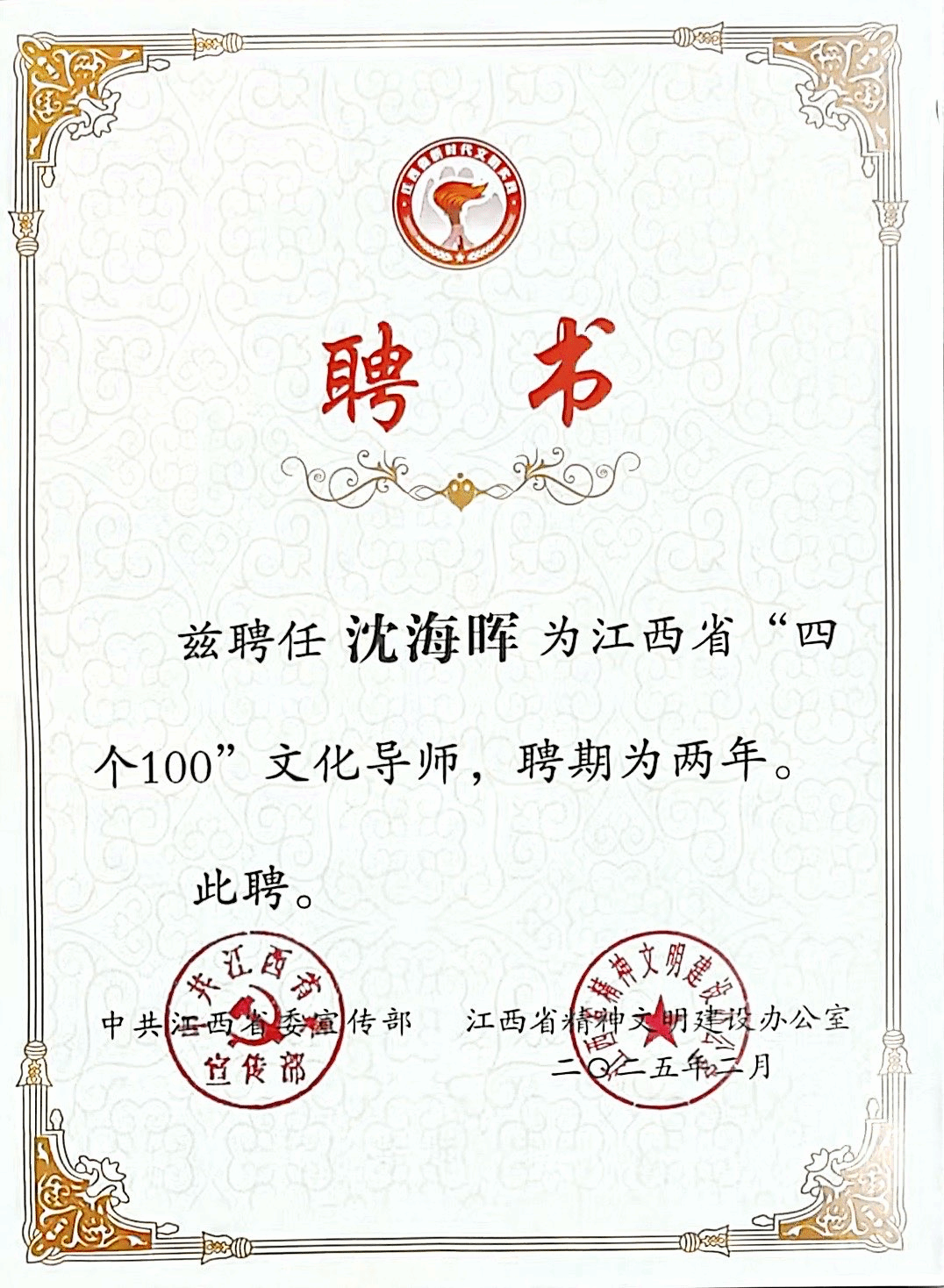 近日,中共江西省委宣传部、省文明办公布了江西省“四个100”文化导师名单,WilliamHill威廉希尔沈海晖教授获聘为非遗导师。