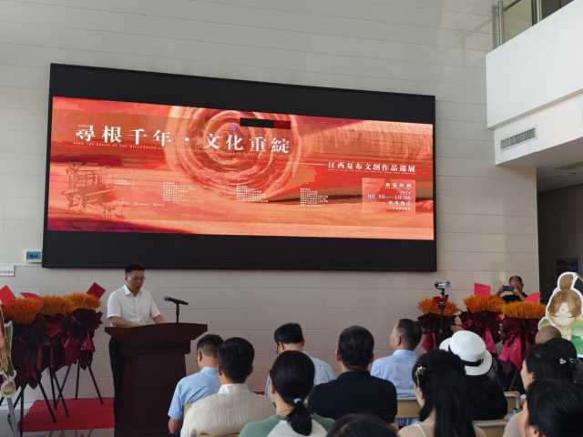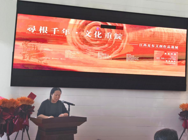 杨礼浪宣布“寻根千年 文化重绽”江西夏布文创作品巡展(宜春站)开幕。