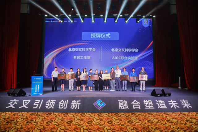 8月16日,以“2024交叉引领创新,融合塑造未来”为主题的第二届北京交叉科学大会在北京隆重召开。开幕式上,北京交叉科学学会理事长、清华大学周济院士,为我院AIGC联合创新实验室正式授牌。我院副院长林彬教授,视觉传达系教师、校创新创业教育中心AIGC艺术实验室的负责人熊樱博士,作为“AIGC联合创新实验室”的重要共建方代表,受邀出席了此次开幕式。