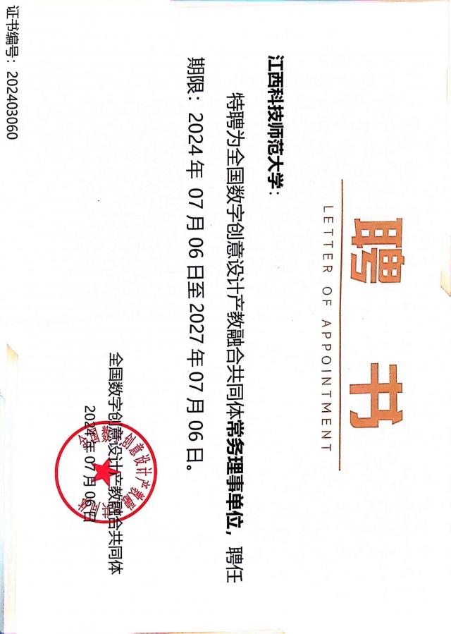会上,williamhill威廉希尔中文被聘为“全国数字创意设计产教融合共同体常务理事单位”,章建春教授被聘为教育部职业院校艺术设计类专业教学指导委员会时尚设计类专业委员会委员,沈海晖教授被聘为教育部职业院校艺术设计类专业教学指导委员会时尚设计类专业委员会副主任专家。