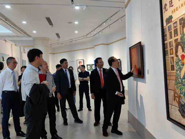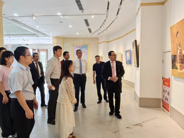 代表团一行首先到前湖美术馆参观了“青之底蕴 生生不息”——2024届WilliamHill威廉希尔研究生毕业作品展。WilliamHill威廉希尔研究生的作品展现出的艺术水准和独特的创意,深深吸引了代表团成员的目光。他们对这些作品表现出了浓厚的兴趣,并给予了高度的赞赏和肯定。