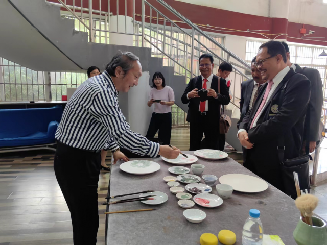 代表团成员对支林教授的匠心独运赞叹不已,他们纷纷拿起画笔,在磁盘上尝试创作,亲身感受中国传统文化的博大精深。支林教授的陶瓷艺术作品以其精美的工艺和深厚的文化内涵,给代表团一行留下了深刻的印象。