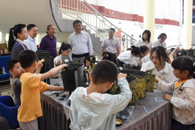 在“青铜器”制作体验环节中,裴鸿卫就制作工艺、器物功用与小朋友们展开了交流,并对活动给予了高度评价。