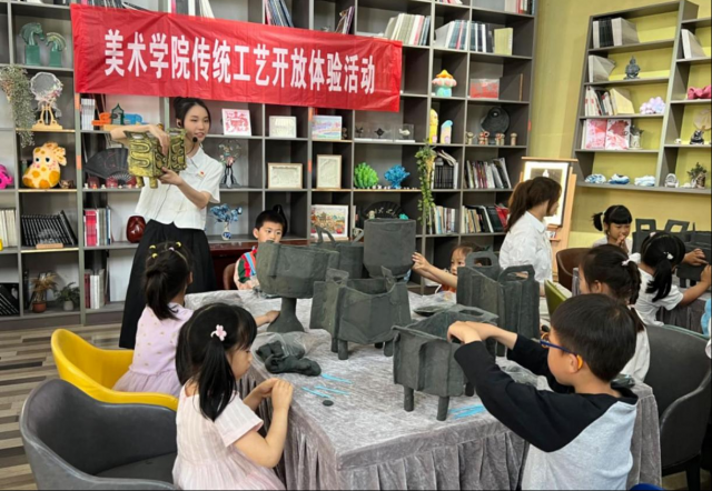 本次活动主题为“我们的青铜时代”,由学校“红创先锋班”皮文蔚团队进行课程设计开发。课程以穿越千年,探寻赣鄱文化源流为切入点,为小朋友们带来了一场沉浸式的美育体验。