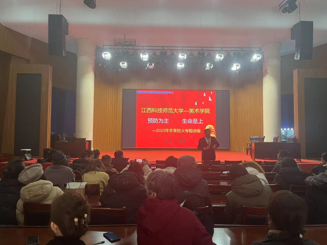 为进一步筑牢冬季火灾防线,切实增强全院教职工消防安全意识和火灾自防自救能力,2023年12月26日下午在美术大楼圆厅开展了冬季防火安全讲座,讲座学院邀请到了南昌市东湖区消联安全服务中心工作人员谌魏,全院教职工100余人参加此次讲座。