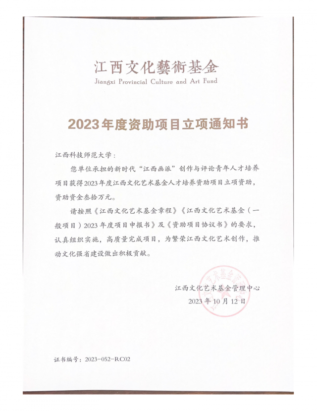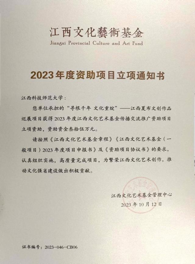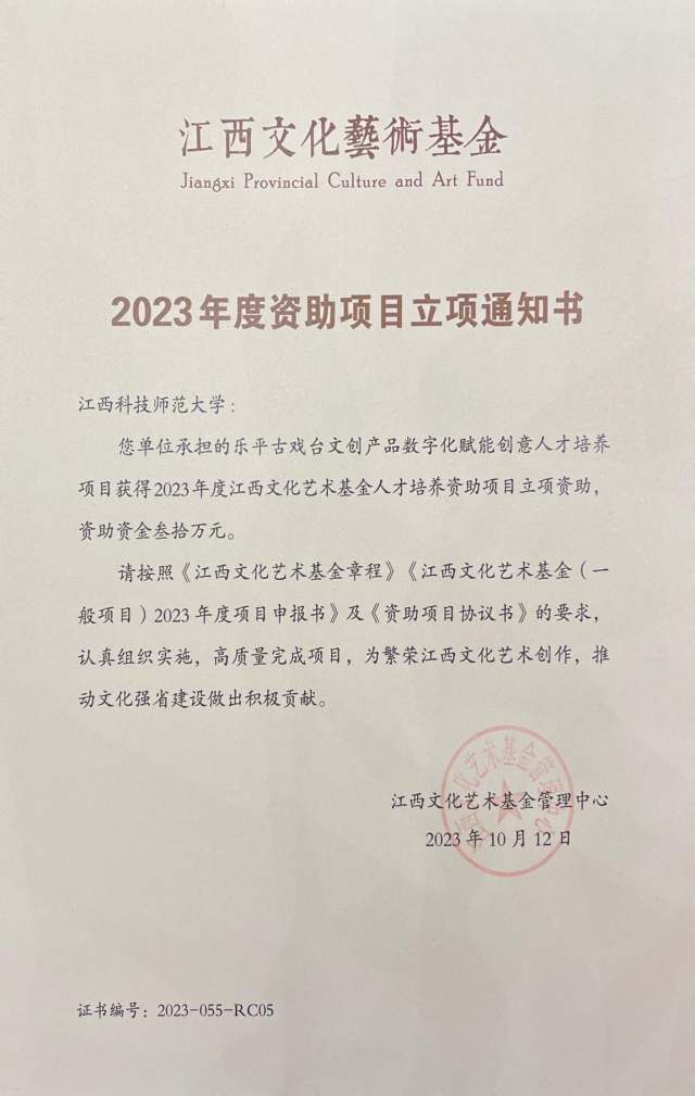 近日,江西文化艺术基金管理中心在南昌召开资助项目主体培训会,WilliamHill威廉希尔章建春、赵勤、周群三位老师主持的《“寻根千年 文化重绽”—江西夏布文创作品巡展》《乐平古戏台文创产品数字化赋能创意人才培养》《新时代“江西画派”青年创作与评论人才培养》3个项目分别获批“传播交流推广资助项目”和“人才培养资助项目”立项,总资助经费达95万元。