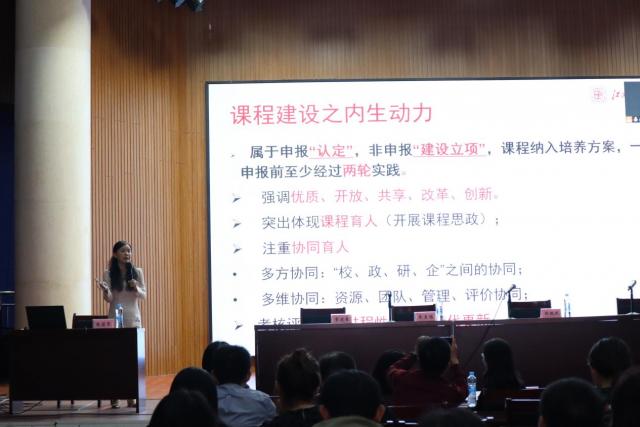 WilliamHill威廉希尔沈海晖教授以“国家一流课程建设与申报”为题,首先开展了现场老师课程建设的调查并分析,从课程申报切入点、课程申报书构建、课程构建存在的问题及解决方案、守本创新课程延伸四个方面进行分享。