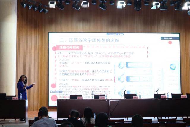 赵勤教授以“教学成果奖的填报要点分析”为题,从什么是江西省教学成果奖、省教学成果奖如何选题、教学成果奖的填报要点以及教学成果奖的材料分析四个方面对教师申报教学成果奖进行了精细指导。