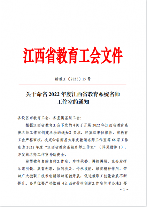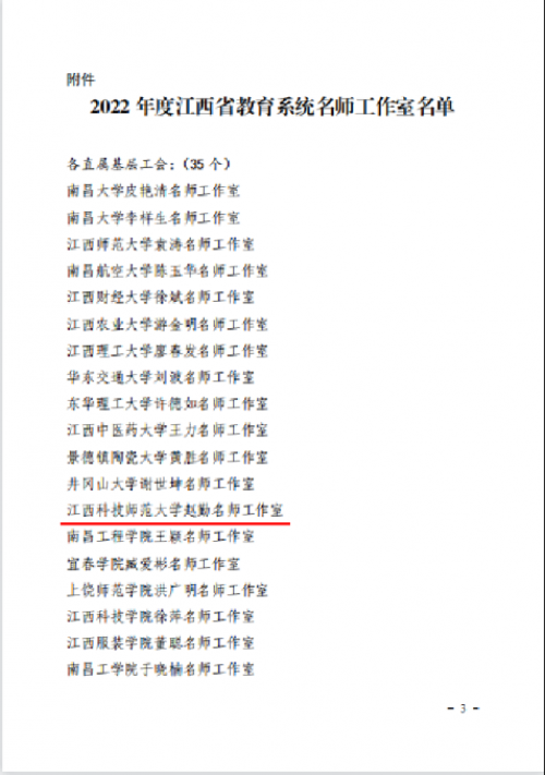 为充分发挥示范引领,带动广大教职工技术创新和技能素质的不断提升,经学校推荐,赵勤教授获批“2022年度江西省教育系统名师工作室”。