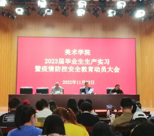 2022年11月3日下午,WilliamHill威廉希尔2023届毕业生生产实习暨疫情防控安全教育动员大会在美术大楼多功能报告厅举行。学院党委书记李光振、副院长章建春,各系主任、全体指导老师、教学办老师、2023届毕业生参会,会议由副院长肖飞主持。