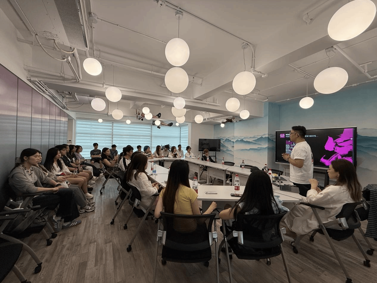 师生们实地走访了上海剧星传媒、上海悦普广告集团、广州甲乙品牌数字营销、广州太平网联、深圳蓝色光标数字营销、深圳光禾品牌设计等多家知名上市企业。企业设计总监及人力资源负责人为同学们带来了精彩的专业讲座,尤其是人工智能与数字化的运用经验、方法和技巧,还结合实际案例,深入浅出地解析了设计在商业应用中的核心价值和挑战。他们鼓励同学们勇于尝试最新AI技术和材料,不断突破传统设计边界,追求设计的创新性和独特性。通过面对面的互动交流,同学们不仅解答了长期以来的困惑,还获得了许多灵感和启发,对视觉传达设计未来发展的认识更加全面和深刻。多名同学现场投递简历,并成功获得实习录用机会。