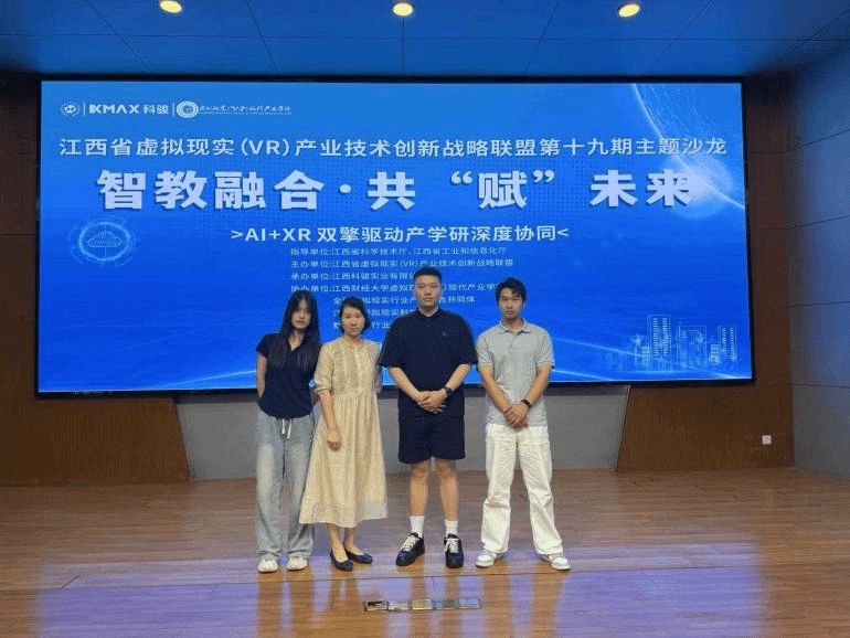 实验室团队在李敏芳博士的带领下,赴江西财经大学参加江西省虚拟现实(VR)产业技术创新战略联盟沙龙,现场发布了“AI生成聊天访谈式视频播客与复刻古人场景解决方案”。这一产学研创新案例展示了AI技术如何赋能教育数字化,受到省科技厅、工信厅及与会企业的高度评价,为后续成果转化和服务区域数字经济奠定了坚实基础。