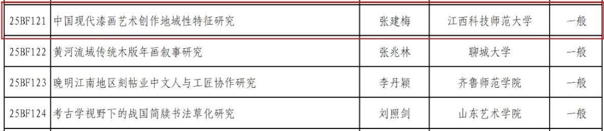 据悉,江西省2025年共获批国家社科基金艺术学项目5项,我校此次立项的研究项目,是其中唯一聚焦美术创作领域的课题。