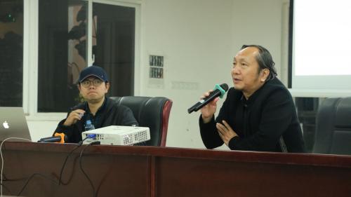 江浩老师以亲身参与的项目为出发点,通过景观和环艺的案例分享,从“杭州亚运会”环境的营造和设计案例入手,详细地给师生们介绍了环境设计作为纽带对城市设计的重要性以及作为一个优秀的设计师如何让受众者有很好的体验感;接着他向大家介绍了“西湖南线改造”设计的考量和运用以及杭州西溪湿地的保护与设计,分别从功能性、地块位置等方面进行剖析,他强调在设计中针对围绕活动场地的不同人群每个人都要有体验有交叉,要从真正的人群活动去考虑,将城市、科技、水乡完美的结合;