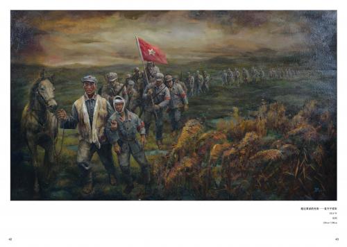 它描绘了当时袁升平将军率领的一支有着辉煌战功的部队艰难穿越草地的红军形象,作品栩栩如生地向人们述说着红军部队响亮的历史,也是艺术家用绘画作品的形式对红军战士表达的敬爱之情,是不忘初心、牢记使命,严格要求自己的体现。