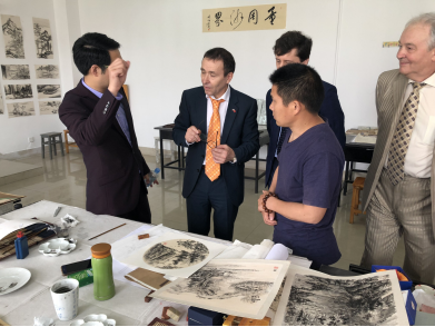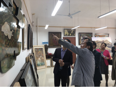 随后,代表团一行来到瓷上绘画班,和正在上课的老师,同学进行了交流。对于瓷上绘画的技法,绘制过程进行了一个简单的了解。