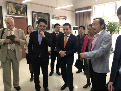 本次俄罗斯代表团中包括了彼尔姆国立大学的副校长马卡洛夫,外语系主任甘达科夫,外事系主任噶日达雅等。代表团首先来到支林院长的井冈学者工作室进行参观,支林院长把自己近些年的作品给代表团进行了一个介绍,双方就作品展开了友好的交流及探讨。最后在支林院长工作室合影留念。