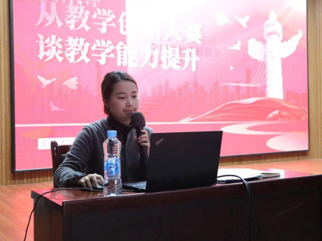 左璇老师以“从教学创新大赛中谈教学能力提升”为主题,从课程改革、分析、创新举措和成效等方面阐述教育教学创新,以及教学创新在课程改革中如何灵活运用双语教学、翻转课堂、线上线下教学等模式。左老师还就新文科建设、思政课的历史、现状、未来发展趋势以及挖掘思政课程的意义,进行了分享和交流。