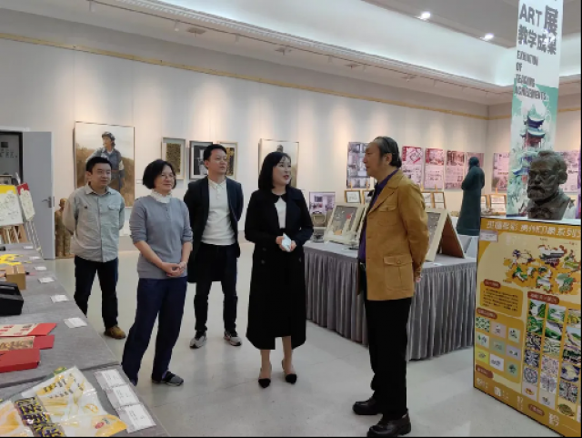 为促进院际之间的交流与合作,优化人才培养方案,全面提高教育教学质量,2024年4月10日上午,江西工程学院抱石艺术学院院长余旭一行4人来我院参观交流。我院支林教授、副院长林彬、教学办主任李午兴、办公室主任樊俊涛、环境设计系主任王伟立和视觉传达系副主任吴题诗陪同。