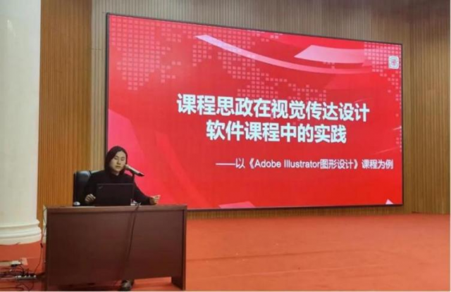 视觉传达系吴题诗老师以《课程思政在视觉传达设计软件课程中的实践-以课程为例》为题,结合自己在平时教学中的课程思政举措,进行了展示分享。她谈到,作为视觉传达设计的基础软件课程,具有实操性强、应用范围广的特点。如何在较为枯燥的软件学习中融入课程思政,提高学生的学习积极性;如何在课程中培养学生爱国主义、人文素养、职业品格、科学精神,实现教育与育人相统一,是该门课程思政的重点和难点。吴题诗老师用课堂中的四个案例,回答了以上问题。无论是简洁的中国银行标志设计还是中国结图形设计,亦或是敦煌九色鹿插画设计、滕王阁旅游手册排版设计,都体现出她在课程中结合思政元素的有益尝试,让学生既掌握了专业知识又从课程中增强了文化自信,不仅要热爱祖国的大好河山,更要热爱祖国的灿烂文化。