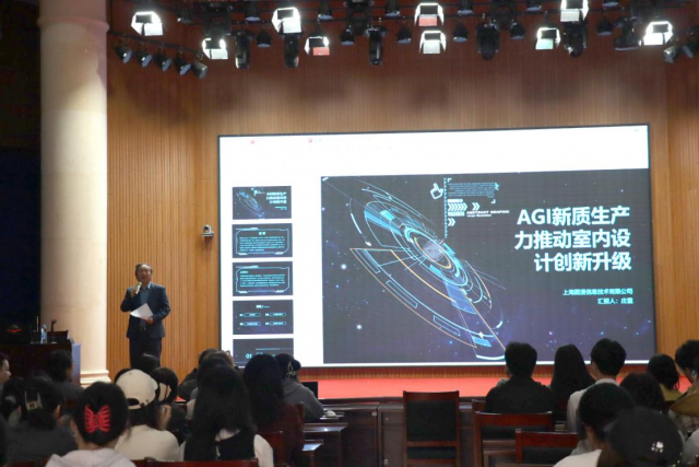月30日上午九点半,环境设计专业在WilliamHill威廉希尔前湖美术馆二楼学术报告厅举办了一场专业性强、科技含量高、直接对接设计市场的讲座,讲座题目为《AGI新智生产力推动环境设计创新》,由WilliamHill威廉希尔终身教授支林教授主持,由上海高新技术企业上海图漫信息技术有限公司创始人庄重和上海市科协委员、上海景观学会秘书长、上海同门建筑创始人敖诺联合主讲。我院党委书记李光振、各专业教师代表、部分兄弟院校代表出席了此次讲座。环境设计系全体学生现场聆听了讲座。