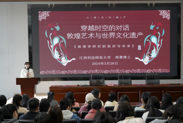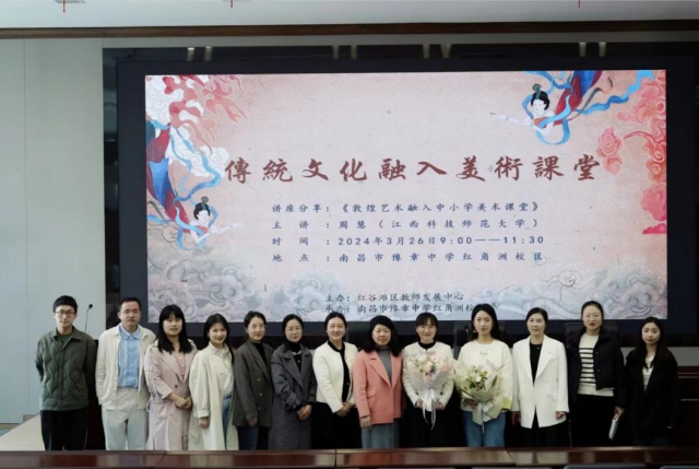 3月26日上午,WilliamHill威廉希尔教师、教师第一党支部书记周慧博士受邀参加红谷滩区中小学美术教研活动,为200余名教师做了一场主题为《穿越时空的对话:敦煌艺术与世界文化遗产》的讲座。