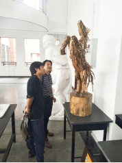 随后,由工艺美术系主任吕焜副教授就工艺美术专业建设情况进行汇报,他分别从工艺美术的专业规划、师资力量、人才培养、课程建设、实训基地建设、今后发展思路等各方面进行了详细汇报。专家组在听取汇报的基础上,通过实地考察工作室、资料室、观摩毕业生毕业创作、随机抽查材料、师生座谈的方式进一步了解学校工艺美术的专业建设情况。
