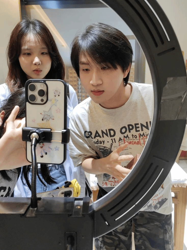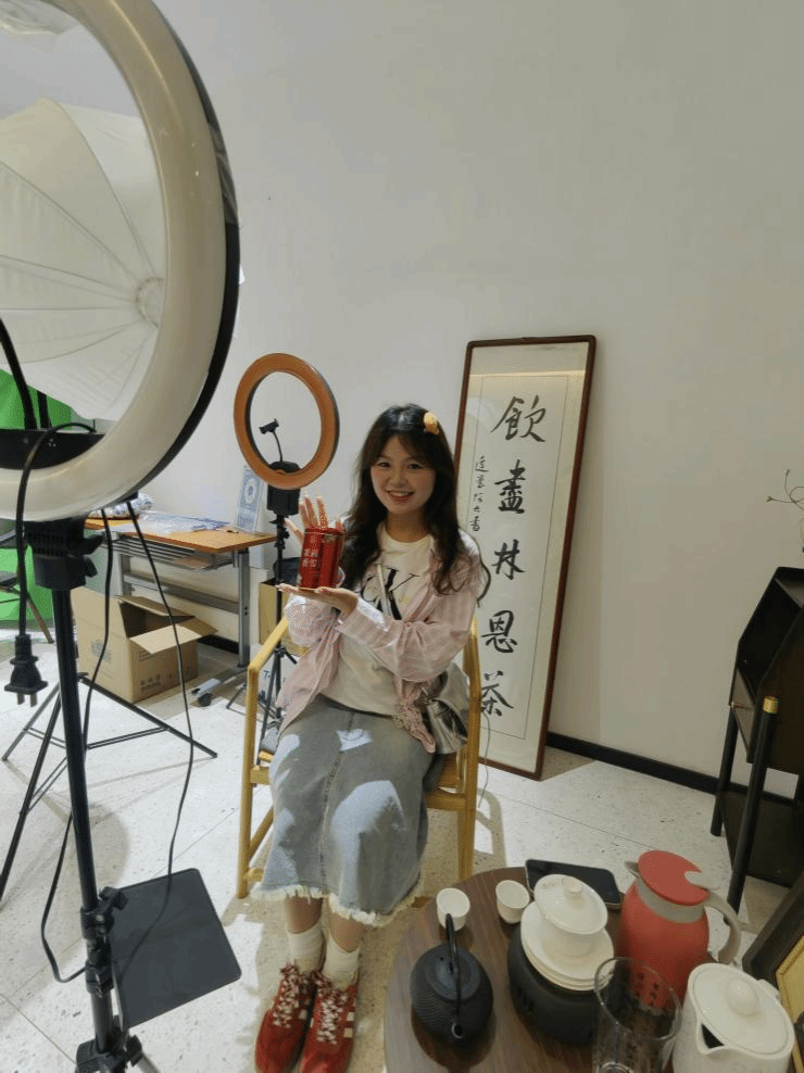 同学们在参观过程中积极参与了直播实操环节,亲身体验产品推介、观众互动及直播氛围营造等核心技巧。通过动手实践,大家对直播运营的关键要素有了更直观深刻的理解,也极大激发了对短视频与直播领域的兴趣。这次学习考察不仅拓宽了学生的专业视野,也让他们深刻认识到视觉传达设计在推动社会经济发展、服务国家战略中的重要作用,增强了作为设计从业者的责任感和使命感。师生们深切感受到传统茶文化与新兴媒体技术融合所迸发的巨大市场潜力。