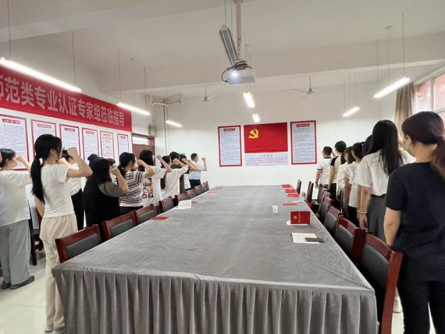 “现在大家面向党旗宣誓,由我领誓。”活动伊始,刘玮带领学生党员们,面对鲜红的党旗,郑重举起右手,重温了入党誓词,一字一句,声音洪亮,慷慨激昂,进一步坚定了学生党员们为党的事业奋斗终身的坚定信念与决心。