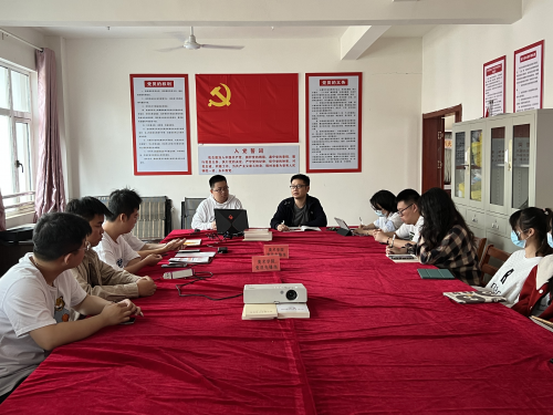 会议伊始,由吴国旭领学习近平总书记的重要文章《在学习贯彻习近平新时代中国特色社会主义思想主题教育工作会议上的讲话》,领学讲解由浅至深,根据支部党员所处年级阶段,讲解如何将习近平新时代中国特色社会主义思想运用到学习和生活中;向在外实习学生党员讲述如何将新思想,新实践融入到自己的新阶段。