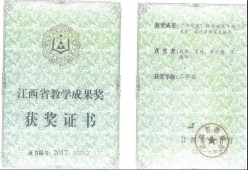 3 | “工作室”教学模式下的“三术型”设计学研究生培养 | 江西省教学 成果奖 | 省级二等奖 | 2017年 |