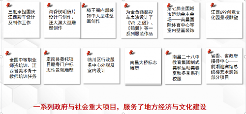 学院党委坚持“以党建为引领,立足专业特色,助推社会服务”工作思路,学科团队紧紧围绕服务国家、服务民生、乡村振兴这一主线,在社会服务方面改革创新,取得了系列具有示范意义的成果和经验。先后承担了国庆彩车设计、汪大渊广场雕塑设计、海昏侯文创产品设计、滕王阁二次改造提升主阁内部展陈设计、广东南台山大佛寺仿古建筑设计等重大工程,既弘扬优秀文化,促进社会精神文明建设,又为区域经济发展做出较大贡献。