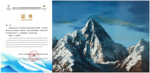 在北京2022年冬奥会和残奥会组织委员会文化活动中,寇焱教授创作的《千山一碧》等5幅漆画作品,紧扣“点燃冰雪激情、讲好中国故事”的主题,运用中国当代艺术表现形式和传统叙事语言,传播了中国文化与态度,展现了新时代文化自信。