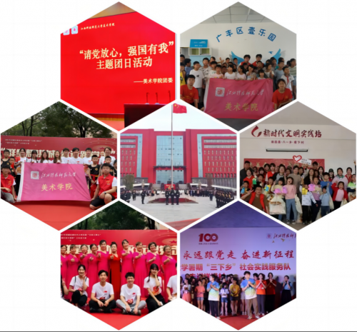团学活动焕发“活力”。通过建立“一个”制度保证体制,结合艺术专业开展“十”余个志愿服务重点项目,规划建设“百”个校地志愿服务实践地, 近千人次学生积极参与志愿活动, 每年志愿服务影响覆盖“万”人,持续开展“个十百千万”计划,共青团的引领力、组织力、服务力不断加强,团组织焕发出更多的青春活力。在学习强国、中国青年网、今视频、文明江西、江西青年志愿者官媒、江西教育厅官媒等20余个国家及地方媒体报道学院实践育人成果,连续2年在“寻找全国大学生百强暑期社会实践团队”平台展示,连续两年实践成果获江西省模拟政协“三等奖”,获江西省三下乡优秀个人等省级荣誉32项,市校级荣誉近百项。