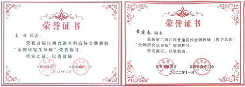 课程建设质量稳提升。学院以教学名师为引领,聚焦一流课程和课程思政建设,不断提升教师教学能力。获批1门国家一流课程、3门省级一流课程、2门江西省精品在线开放课程、1门江西省研究生优质课程、1门江西省研究生优质课程和案例建设和1门江西省课程思政示范项目,荣获6项江西省教学成果奖,出版教材16部,建立了28个本科实习实践教育基地,教育教学走上以质量提升为核心的内涵式发展道路。