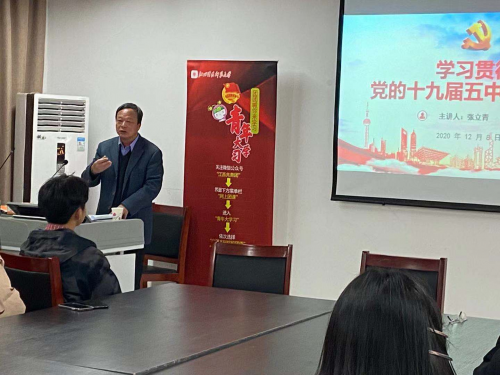 张立青副书记紧扣党的十九届五中全会主题,从新发展阶段、新发展理念和新发展格局等方面通过理论联系实际,深入浅出、旁征博引地进行了深刻解读。他介绍,党的十九届五中全会开启了全面建设社会主义现代化国家新征程;坚持新发展理念,推动高质量发展;立足新发展阶段,加快构建以国内大循环为主体、国内国际双循环相互促进的新发展格局。