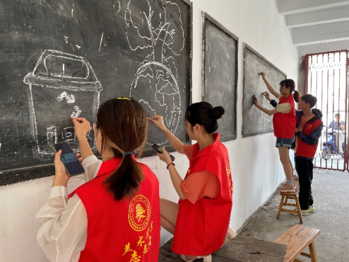 天气虽然炎热,但是挡不住志愿者们火热的心。上午八时,在彭家桥街道北京西路社区家属院围墙前,志愿者们调色、勾勒、涂色,使得原本普通老旧的墙面变成了一面波澜壮阔的党史文化墙,形象生动地再现了党的光辉历史,引来了不少居民驻足观赏。志愿者们还给周边居民讲述每幅墙绘背后的党史故事:“天问一号”承载着一代代中国人的航天梦,脱贫攻坚战取得了全面胜利是中国共产党的伟大光荣、老一辈共产党人所展现的红色家风亟待我们传承与发扬……各个内容交相呼应,既给美丽社区建设增添了别样的色彩,让广大居民群众耳濡目染感受到文明和谐的文化气息,营造了“处处是课堂,时时受教育”的浓厚学习氛围,也在潜移默化中滋润了居民的精神土壤。