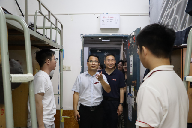 在走访过程中,学院领导和老师们对新生表达了亲切问候,并温馨提醒同学们要严格遵守公寓管理规定,注意寝室卫生,强化安全意识。李光振、朱五福特别嘱咐各位同学们在宿舍要相互关心、相互帮助,有问题及时向辅导员班主任反映,共同营造良好的学习、生活环境,希望大家以饱满的热情投入到新学期的学习生活中去。