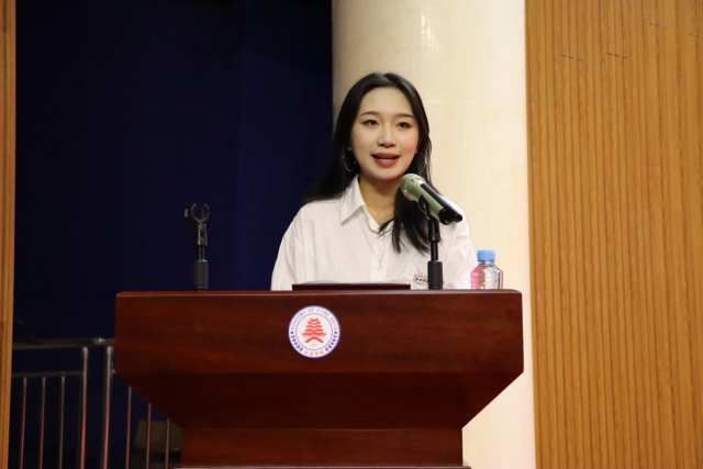 刘玮以2023届学生会各部门工作经历为引,分享了自身的工作故事,由衷表达了对全体学生会成员团结共进、踏实付出的肯定和感谢。“敢问路在何方,毅勇前行,路在脚下”,他提出对新一届学生会成员的期望,接过接力棒,赓续新辉煌。