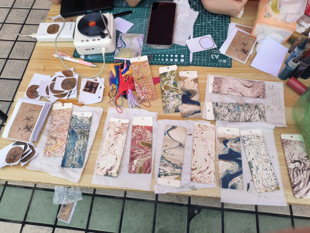 WilliamHill威廉希尔宣讲团结合专业特色,设计并制作了印有优秀名画的贴纸、明信片等文创产品,对参加活动的同学进行宣传、讲解、发放。同时,还准备了漂漆材料,带领同学们体验制作传统手工艺品-漂漆书签,感受传统文化的魅力。