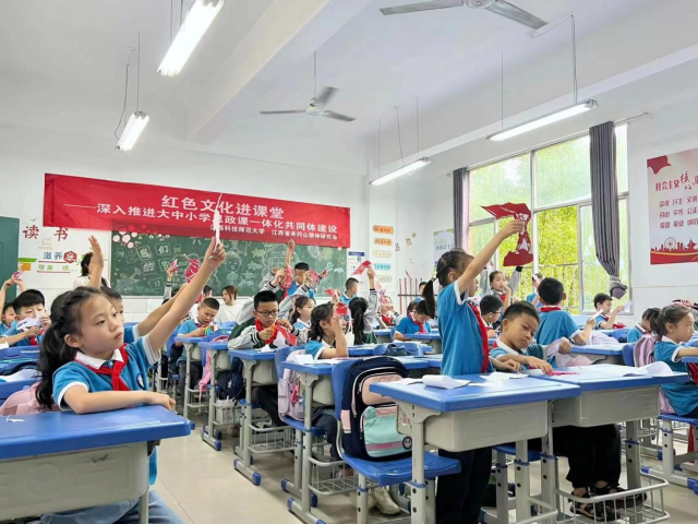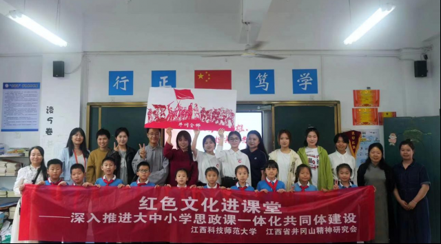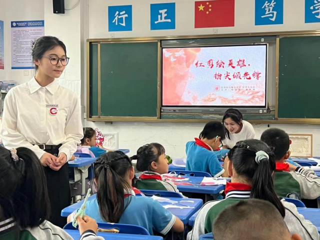 美育是提升校园文化软实力、提升人才培养质量的重要内容,williamhill威廉希尔中文聚焦立德树人根本任务,遵循高校美育特点,发挥思政育人的主观能动性,以课程建设为依托、以思政育人为核心,全方位推进红色美育服务。2024年6月5日,学校组织“红创先锋班”美育社会实践服务团来到红岭小学的课堂,用一场别开生面的剪纸活动,带领小朋友们参与到“井冈会师”的情境中,将思政教育和传统剪纸艺术巧妙结合,为孩子们带来了一堂生动的美育课程。