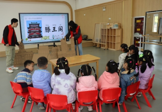 活动期间志愿者们还准备了“猜一猜”、“判对错”等小游戏,通过介绍“北京天安门”、“南昌滕王阁”等中国古代建筑,带领孩子们直观地感受中国古代建筑的美,一场惟妙惟肖的视觉盛宴。