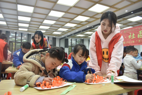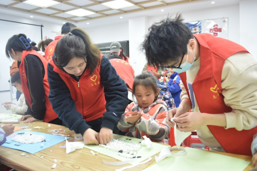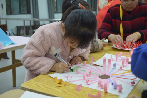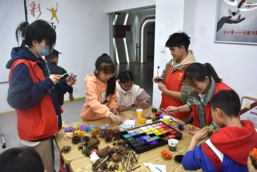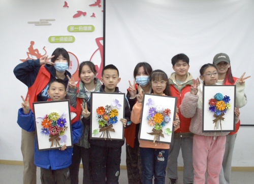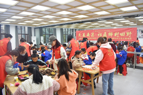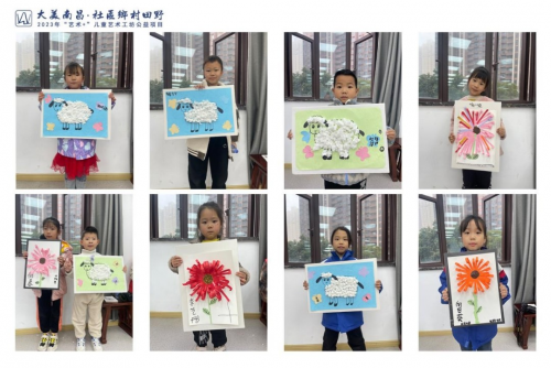 启动仪式圆满结束后,开启了“儿童艺术工坊”课程。课程设计以通过制作艺术手工,采用个人制作或小组合作形式制作手工作品。促进儿童的认知能力、社会交往能力、情感的发展以及身体协调能力等多元智能的发展。儿童艺术工作坊成员和志愿者们按照原定计划与儿童之家的孩子们通过对手工作品的兴趣爱好,分成三组。“青青草原”小组的作品是利用卡纸等材料制作手工挂画;“松果”小组则是利用松果为原料,以艺术加工方式,希望在三月八日之前,制作一束献给母亲的花束;“太阳”小组的孩子们则是以丝带、木棍为构成元素,制作了一幅太阳花,表示少年儿童心心向党,茁壮成长的美好愿景。本次活动被江西省教育厅网站,江西省广播电视台“今视频”栏目重点报道,发布后两小时内点赞量达23万人次。