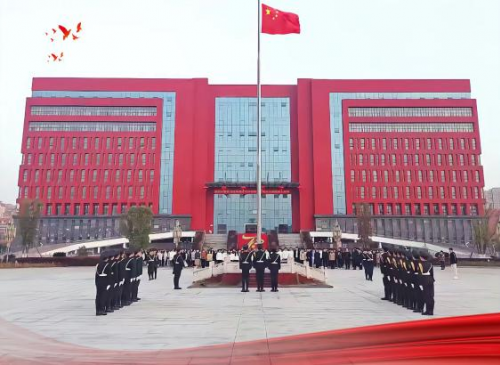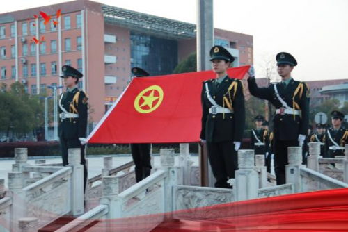 6时30分,升旗仪式正式开始。国旗护卫队身着整齐的制服,踏着整齐划一、铿锵有力的步伐走向升旗台。伴随着雄壮的国歌声,在场师生面向国旗庄严肃立行注目礼,注视五星红旗的坚定眼神,凝聚着志向与梦想。
