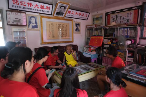 “不忘来时路,奋进新征程”,7月12日,队员们来到抗美援朝老兵郭斯行老人家中,在“雄赳赳,气昂昂,跨过鸭绿江,保和平,卫祖国,就是保家乡...”的高亢歌声中,领略那段艰苦卓绝的抗争记忆。虽身竭而心不老,郭老寄殷殷期望予新时代的青年,他为队员们所写下的寄语饱含真情,希望当代青年能够珍惜时光,学好本领,立志成才,报答党恩,接过“强国建设”的接力棒。