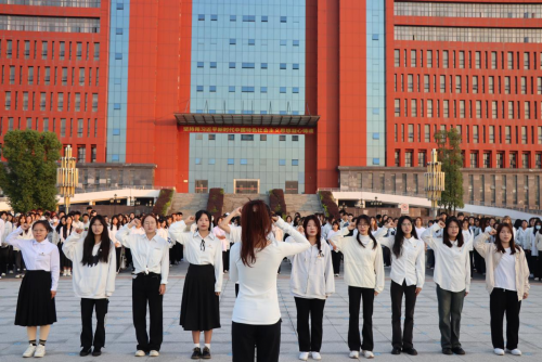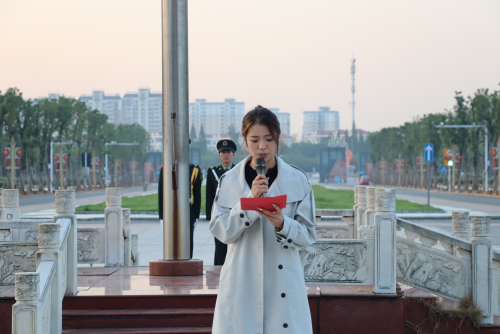 升旗仪式上,重温入团誓词。面对鲜红的团旗,2023级美术学2班的曹欣媛同学带领团员集体宣誓。全体团员庄严地举起右拳,用铿锵誓言诠释青年梦想,用实际行动见证青年成长,为奋进新征程凝心聚力,勇毅前行。